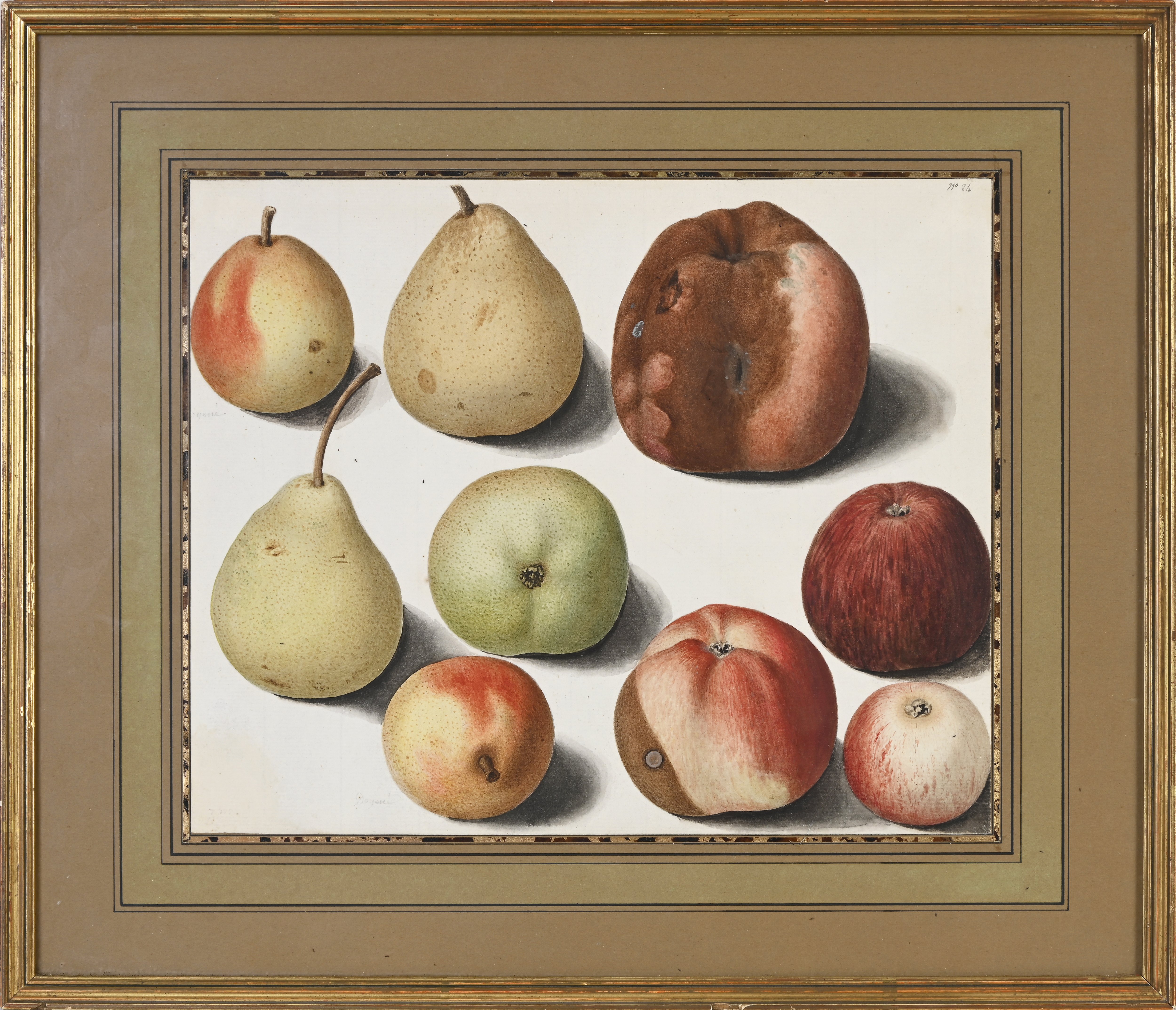 Watercolor and gouache highlights on black chalk lines on watermarked paper
