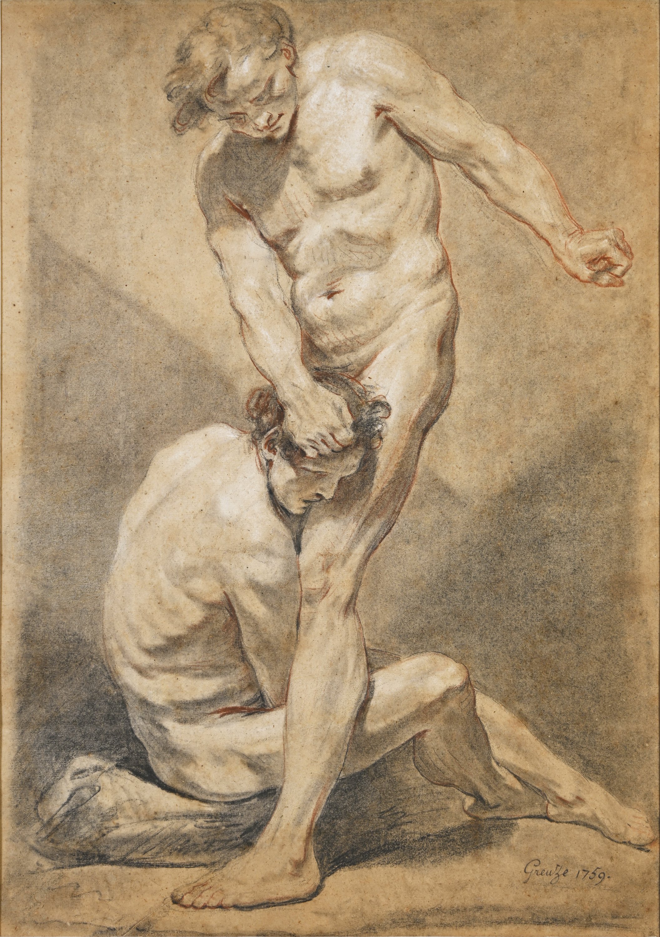 Black chalk, stump, red chalk and white chalk highlights on buff prepared paper 56,3 x 41 cm