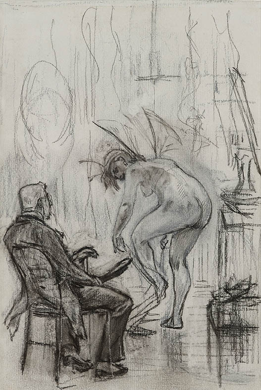 - Félicien Rops, Le Maillot, charcoal, watercolor, pencil, sanguine on paper 8 ¼ x 5 15/16 in. Germany, Private Collection.