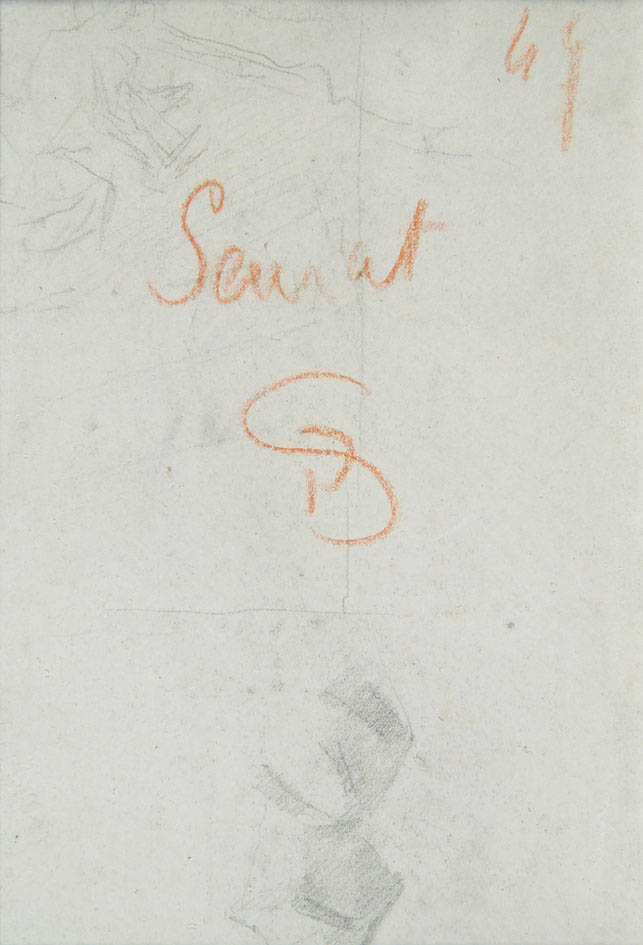 Our **black chalk drawing** is listed in C.M. De Hauke’s catalogue raisonné, *Seurat et son œuvre*, volume II, number 392. It can be compared to another sheet by Seurat, drawn in charcoal on chamois paper, from 1881–1882: **The Seamstress**, a similar motif of a woman bent over her needlework, mentioned in the same book, number 446.