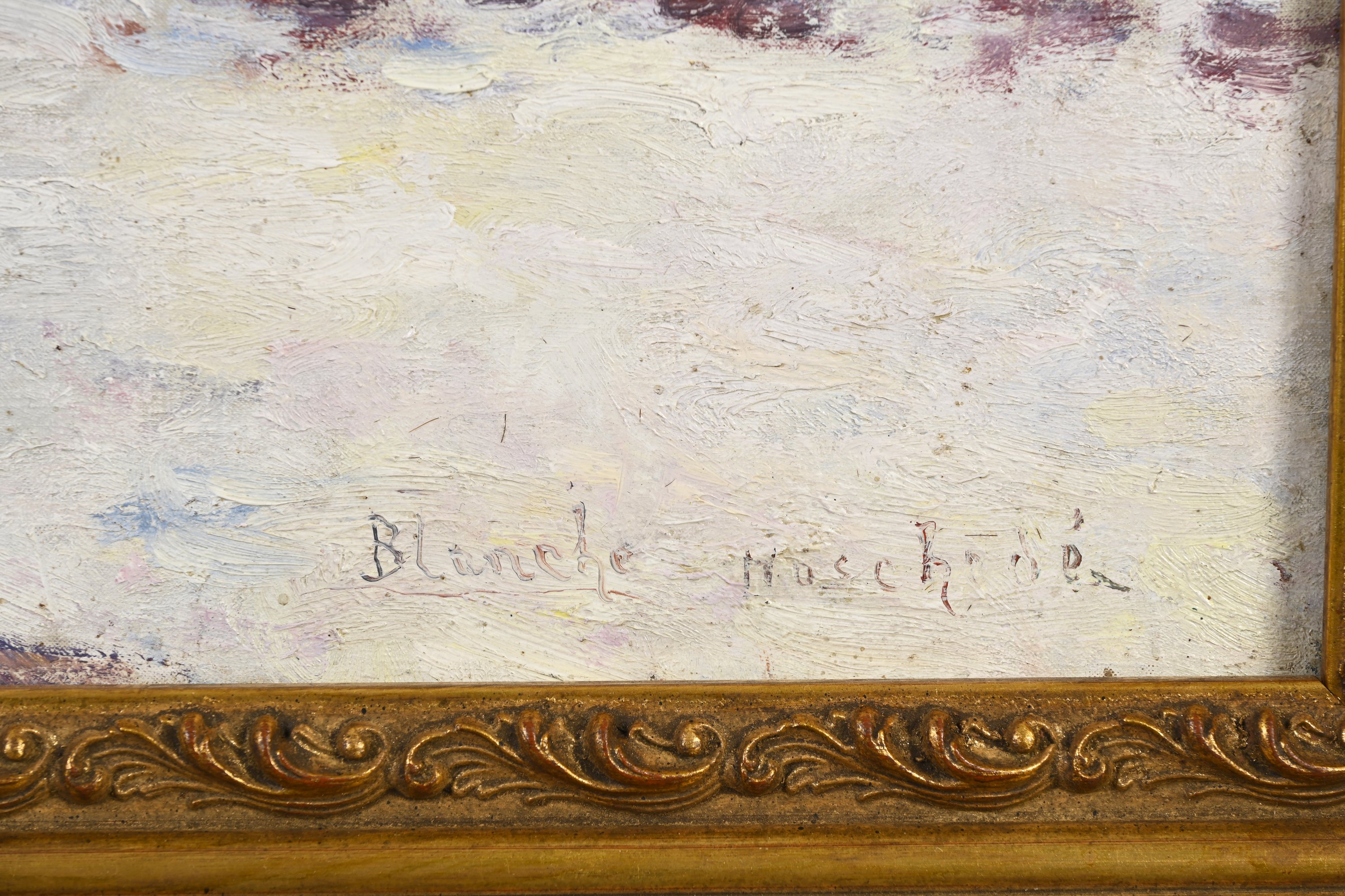 Two major periods can be distinguished in Blanche’s career: before and after the death of Claude Monet in 1926. The present work thus belongs to her first period. Unusually for Blanche, this canvas is dated. In 1888, at age 23, she aimed to attempt an exhibition at the Salon. Advised by Monet and cautioned about the challenge, she likely began producing paintings in January for a possible March exhibition, of which this work appears to be a part. However, its absence from the catalogue and the silence of the jury suggest it was rejected, though no written record confirms this.