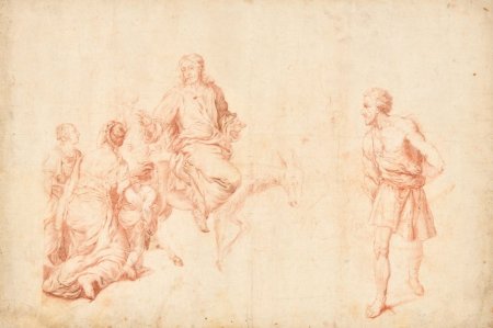 This painted study, until now considered with respect to the art of Géricault, merits a closer look as to its relation to the definitive version of the Plague-Stricken at Jaffa. Several details suggest that it is not a copy of the group with the plague-stricken nude and the Turkish doctor who attempts to care for him, but a finished study preparing its integration to the composition. The handling, without the least hint of an intent to replicate precisely a model, pleads in favour of inserting the picture in the process by which Gros finalized the large-scale version.