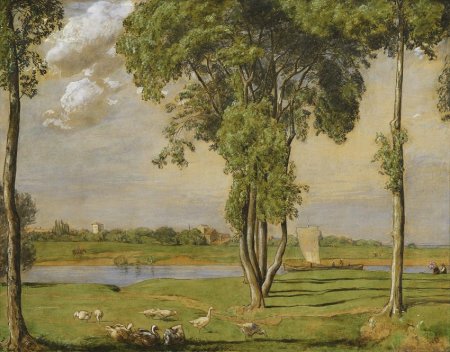 Hans Thoma fut profondément marqué par l’Italie où il séjournait régulièrement. La Renaissance florentine façonna son style ; ses paysages évoquent la campagne romaine. Ses recherches le conduisirent vers le symbolisme, qu’il découvrit au contact d’Arnold Bckiin. A la différence de cette figure majeure du symbolisme allemand, l’univers de Thoma tient davantage de la scène champêtre que d’une mythologie allégorique.