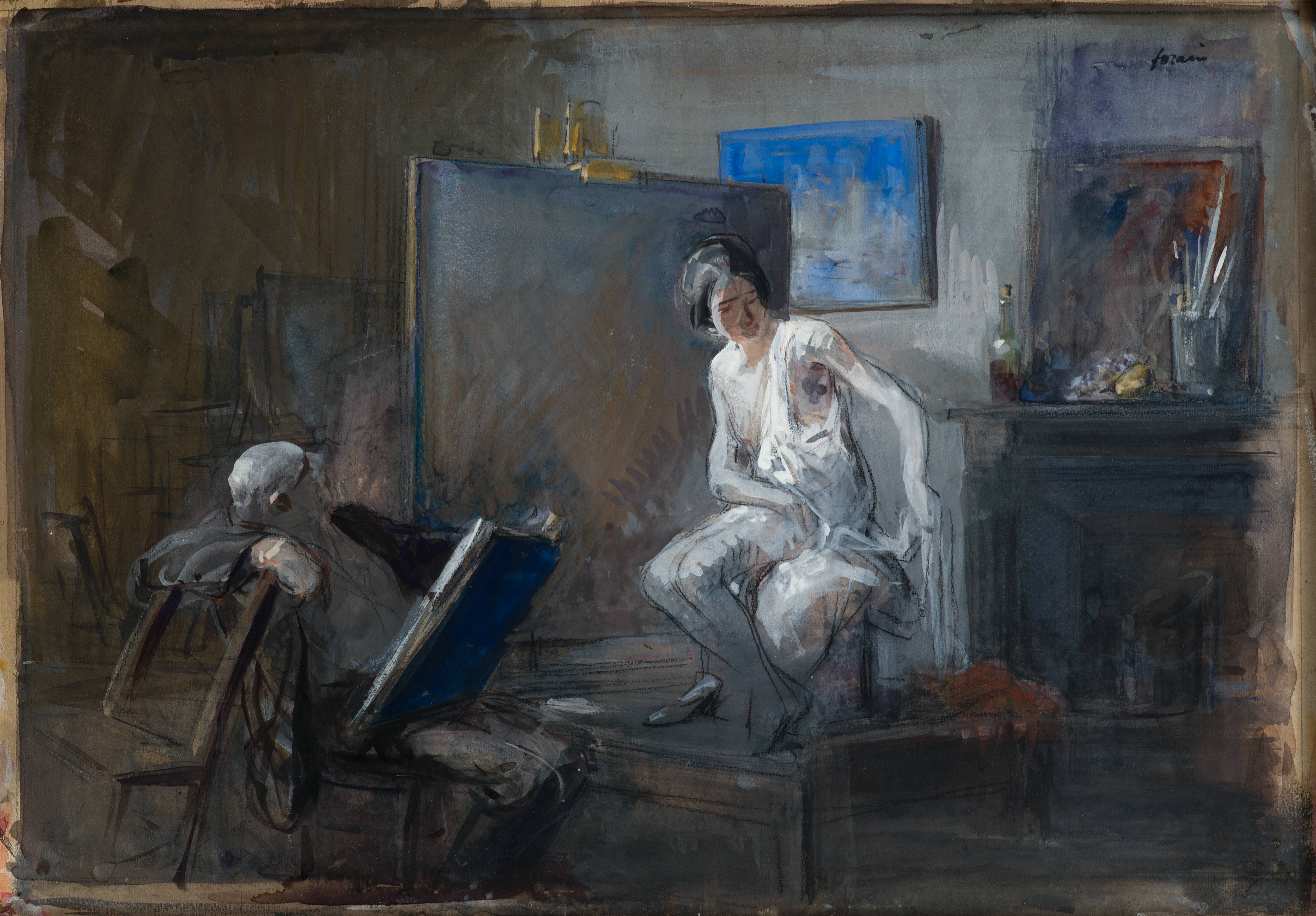 Aquarelle et rehauts de blanc sur mise en place au fusain 37,8 x 52,5 cm