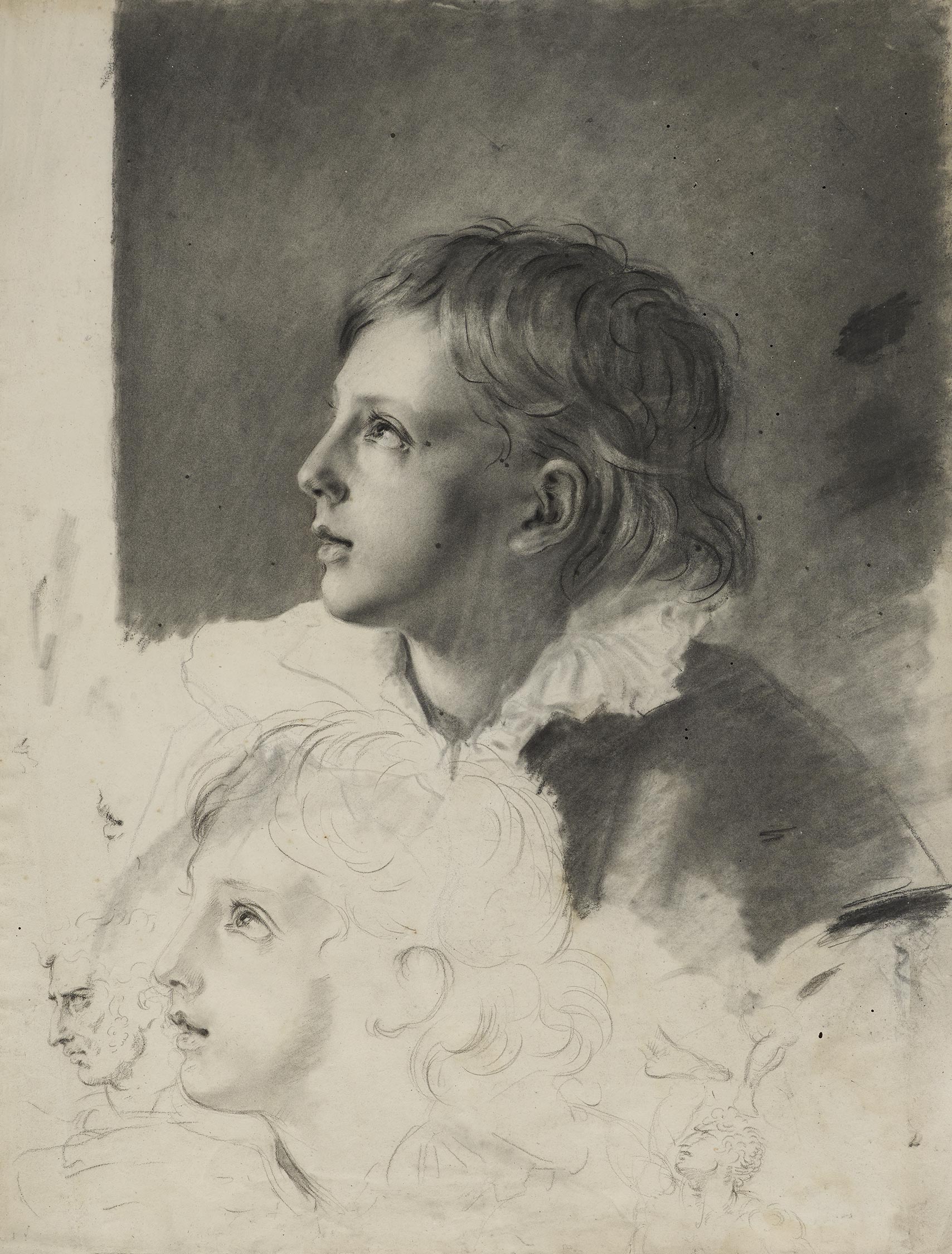 Pour la qualité de la facture, comme l’intensité des expressions, on peut rapprocher nos dessins de deux autres portraits d’études de l’artiste : une Tête de garçon tourné de trois quart à gauche, regardant en l’air et un Portrait de jeune femme en buste, tournée de trois quart vers la gauche (vente Christie’s, 15 décembre 2000, n° 194 et n° 200).