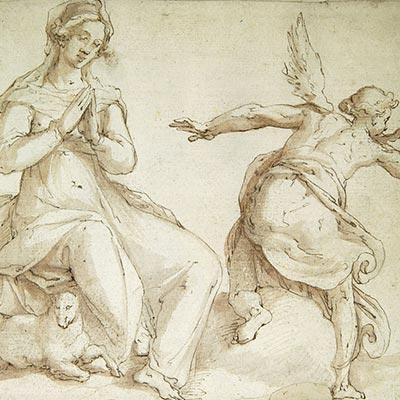 Plume, aquarelle et rehauts de gouache sur papier vergé 28 x 38,7 cm