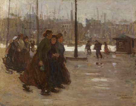 – 1926). Notre œuvre peut être confrontée à certaines vues fluviales ou maritimes, vivantes et épurées, que peint ce dernier avec une technique proche (Hollande, vente Europ Auction, 10 novembre 2011).