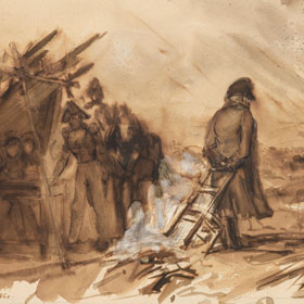 Au revers, sur le châssis, une étiquette d’exposition Bernheim-Jeune (Gros-Géricault-Delacroix janvier-mars 1954) et cachet de cire rouge PD [Pierre Dubaut]