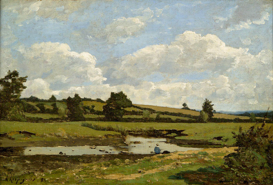 Notre tableau, probablement exécuté dans l’Allier où l’artiste possédait une propriété près de Hérisson, esquisse une vision de la nature pré-impressionniste. La touche brossée en réserve de la toile rend la nature vivante avec une lumière vibrionante. Réalisé d’après-nature ce paysage parfaitement composé préfigure les œuvres d’Alfred Sisley.