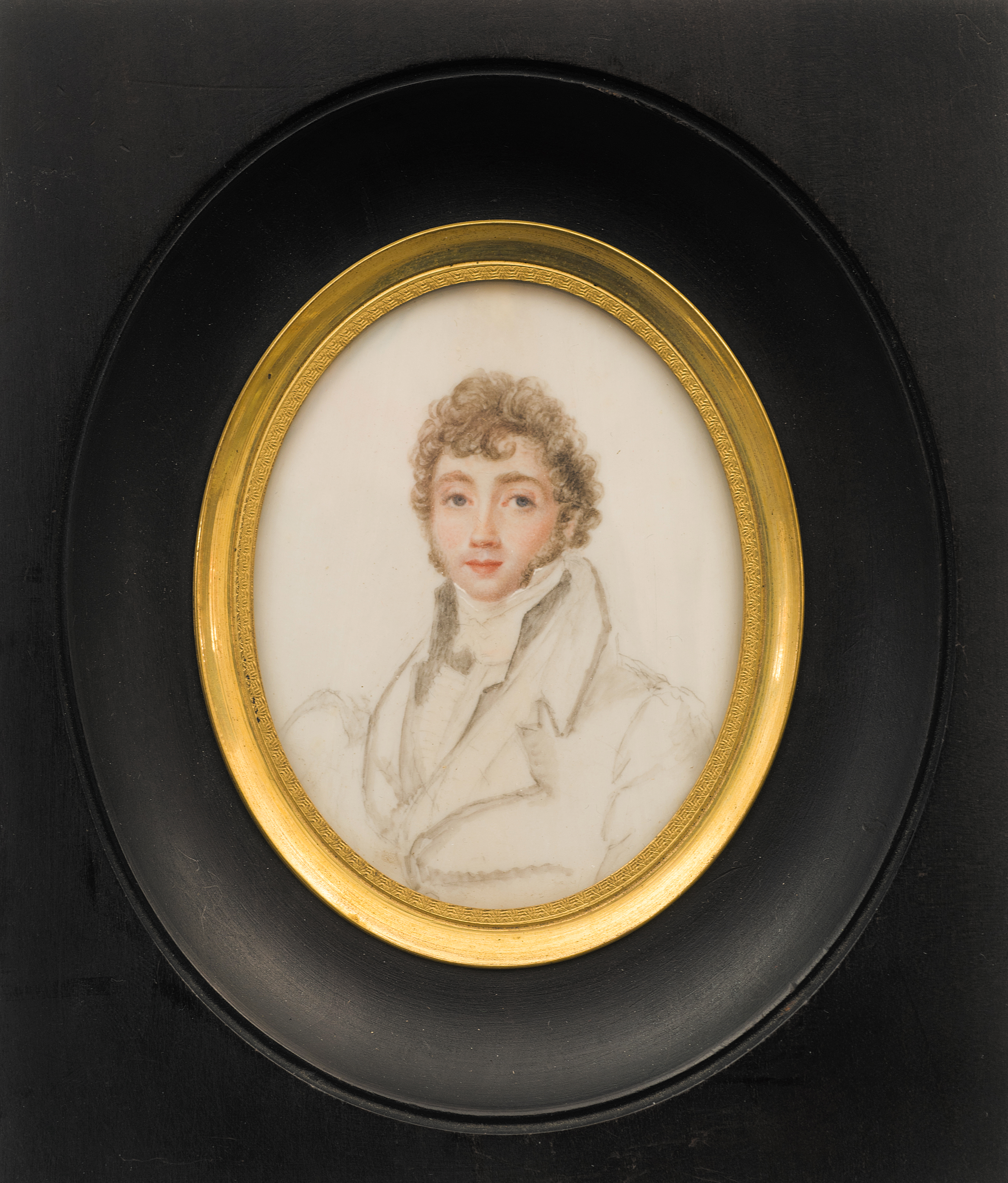 Aquarelle et gomme arabique sur trait de crayon sur ivoire (ovale) 7,5 x 6 cm