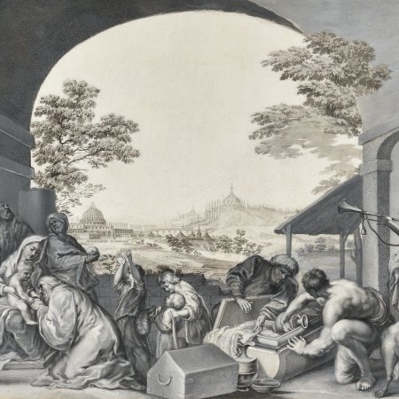 Bien que déjà expérimentée dans l’Antiquité, l’utilisation de la peinture sur pierre, selon la tradition vasarienne, aurait été élaborée vers 1530 par Sebastiano del Piombo (Venise 1485 – Rome 1547). Elle se serait répandue en Toscane en Lombardie et dans le Latium avant d’atteindre les pays au nord des Alpes : Espagne, France, Bohême, Flandres. Elle dura jusqu’au milieu du XVIIe siècle. Cette technique jouit dès le début d’une faveur particulière, prisée par les hautes et moyennes couches de la société afin de réaliser des portraits ou des œuvres de petites dimensions créées sur des supports de nature minérales diverses telles que l’ardoise, le marbre, l’albâtre, le porphyre, l’améthyste, la malachite etc…Dans les textes italiens, l’ardoise est désignée par les termes de « pietra lavagna » du nom d’un château près de Gênes où on la trouve et l’exploite depuis le XVIe siècle ; les peintures sur « lavagna » sont aussi décrites sous le vocable de pietra di Genova. On trouve plus rarement le terme de ardisia. L’ardoise tout comme la lavagne est un schiste argileux et calcaire gris-bleu sombre ou noirâtre. Elle se détache en feuilles ou lamelles et peut atteindre des dimensions importantes de plus d’un mètre : en témoigne par exemple, le tableau double face représentant David tuant Goliath peint sur ardoise par Daniele de Volterra (Musée du Louvre) qui mesure 133cm x 177cm ! L’ardoise présente l’avantage de ne pas être attaquée par les insectes ou l’humidité comme les peintures sur bois ou par l’usure comme les peintures sur toile ; pour cette raison on la choisit pour des peintures votives de rues et peintures d’autel. En revanche elle reste fragile car cassante ; l’huile est le medium utilisé, et les ombres bleutées sous jacentes de ce type de support servent parfois à des fins stylistiques jouant le rôle de réserves. C’est le cas de ce portrait inédit où ces ombres animent les carnations du modèle.