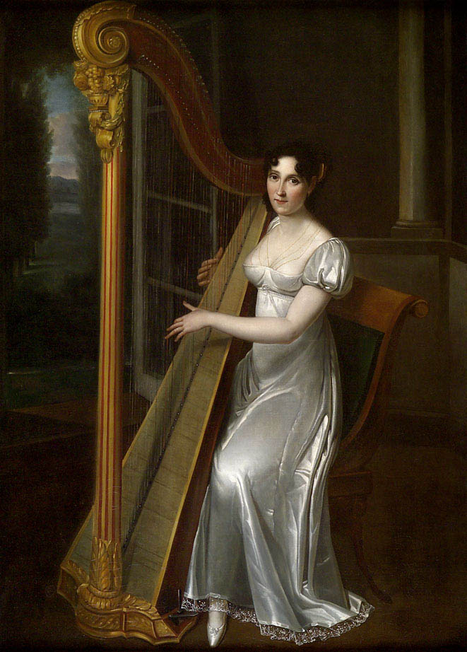 Portrait de Joséphine Fridrix jouant à la harpe