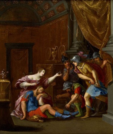 Fils d’un marchand flamand installé à Lyon frappé d’une mort précoce, Jacques Stella débute sa formation auprès de ses frères et sœurs artistes. Très vite, le talent de ce jeune artiste, remarqué parmi ses contemporains, lui permet de côtoyer la gloire. Il est admis comme pensionnaire du Grand-Duc Côme de Médicis à Florence, reçoit de nombreuses commandes à Rome et rejoint la cour d’Espagne sur invitation officielle. C’est sur ordre du cardinal de Richelieu que Stella revient en France, « luy ayant fait entendre qu’il lui estoit bien plus glorieux de servir son Roy que les Estrangers, […] le presenta au Roy, qui le receût pour l’un de ses peintres & luy donna une pension de mille livres & un logement dans les galeries du Louvre ». La même année, il est fait chevalier de Saint Michel par la reine.