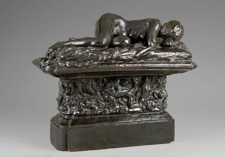 A côté de l’image de la jeune mère, très appréciée de ses commanditaires anglais, la femme nue qui prend parfois les traits d’une nymphe est l’un des sujets de prédilection de Dalou. Il le développa surtout dans les dernières années de sa vie, au travers de nombreuses petites études vigoureuses en ronde-bosse à la terre cuite ou en plâtre qu’il n’exposa ni n’édita de son vivant. Semblant les avoir menées pour son seul plaisir, Dalou les conserva dans son atelier, puisant parfois dans ce charmant répertoire de formes pour l’élaboration de ses monuments.